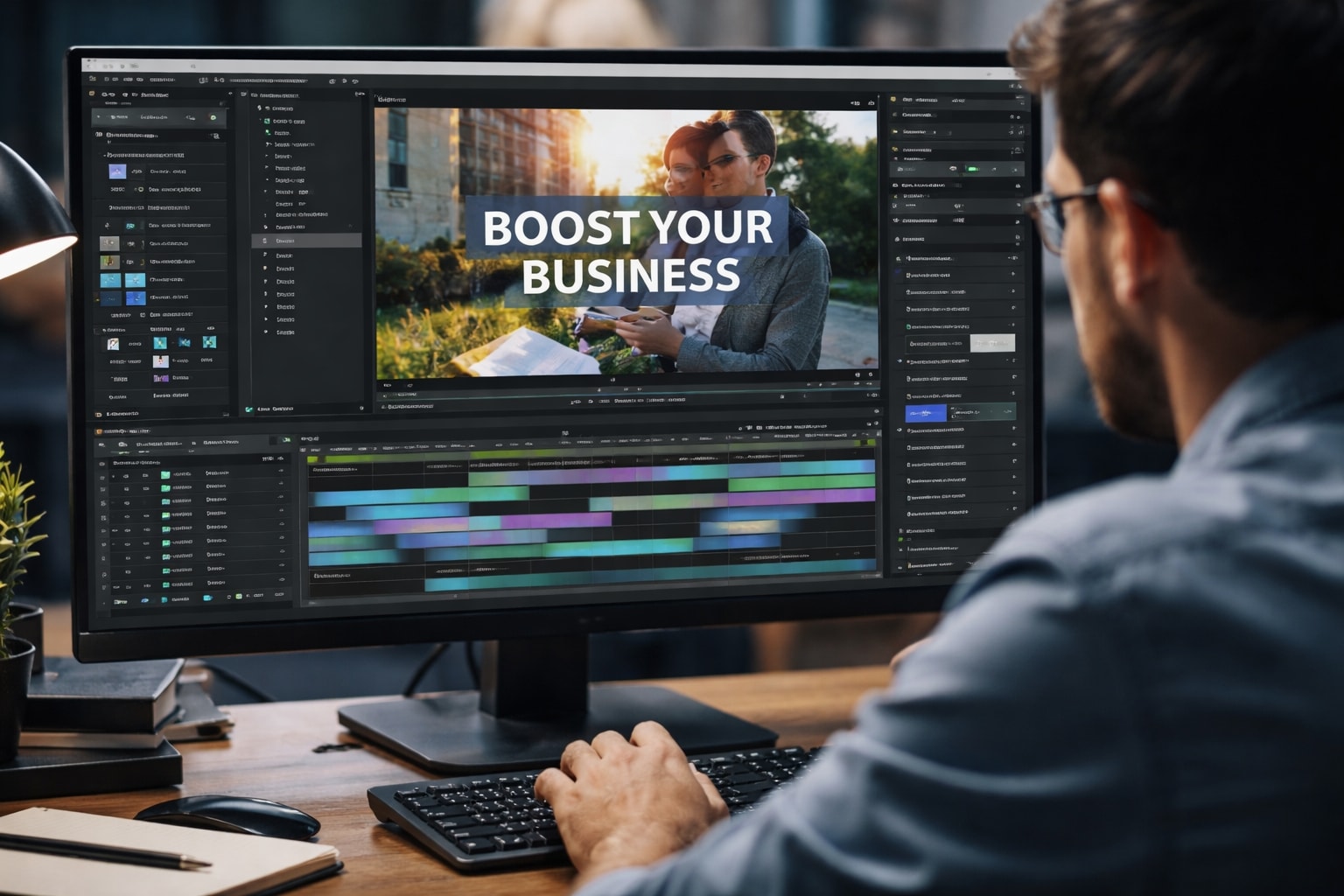 Transformamos grabaciones propias, material proporcionado por el cliente o recursos de stock profesional en piezas audiovisuales de alto nivel.